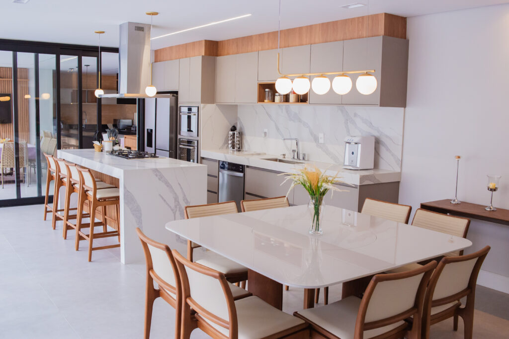 As cozinhas planejadas são projetadas de acordo com as necessidades e preferências do cliente, permitindo que ele escolha os materiais, acabamentos e cores que combinem com o estilo da casa e do morador. Isso garante que a cozinha seja um ambiente personalizado e que reflita a personalidade do cliente